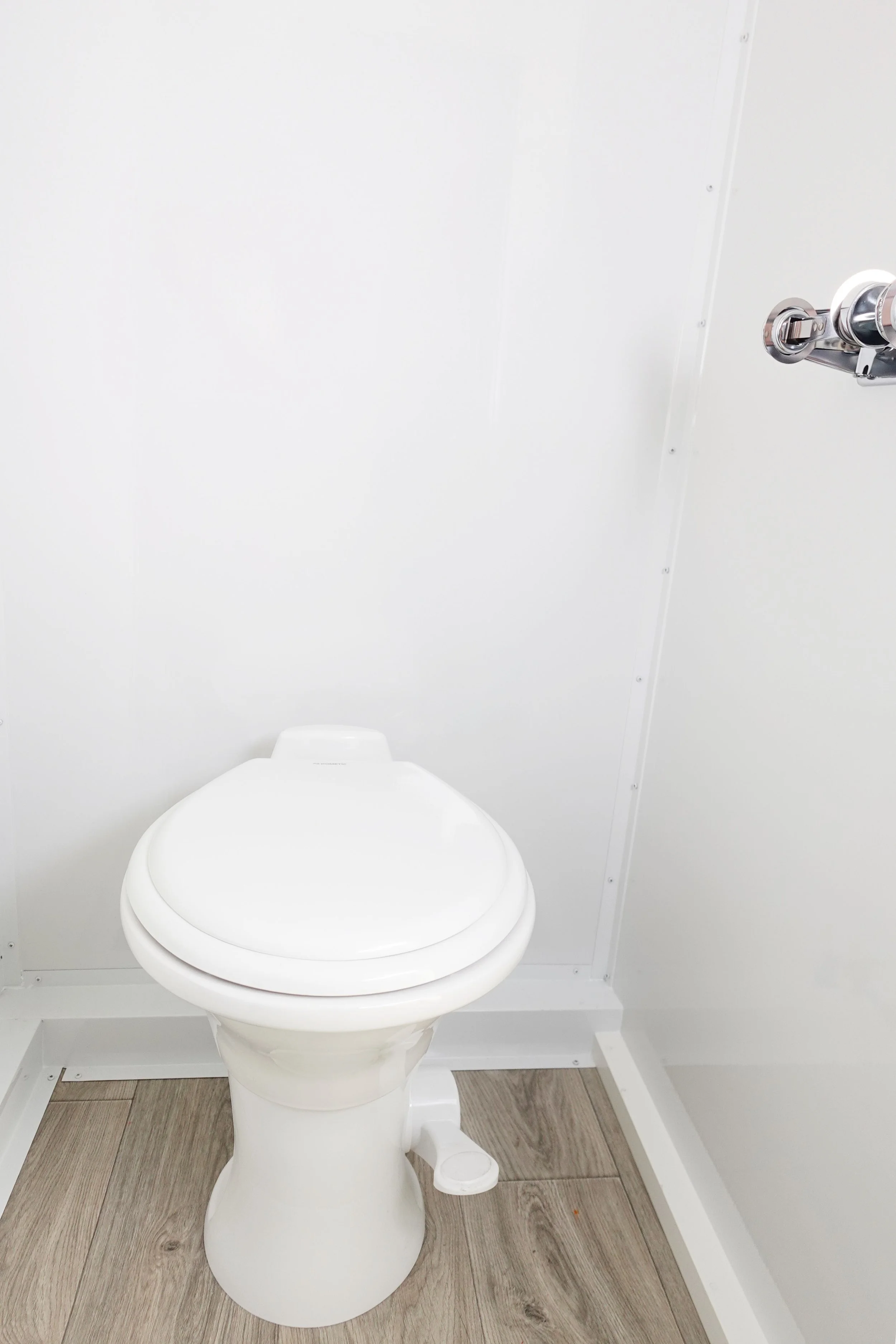 The 2 Stall ECO restroom trailer is a compact solution designed for smaller gatherings and sites where space is limited. Its streamlined design allows for easy placement while still providing a comfortable and private restroom experience.